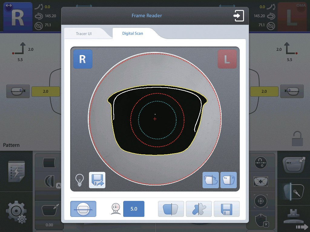 Ассистент при блокировании: Захват, проверка установки блока, его крепления, камера с зумом, проверка размера линзы, регулировка PD/OH в реальном времени, автоматическая регулировка яркости